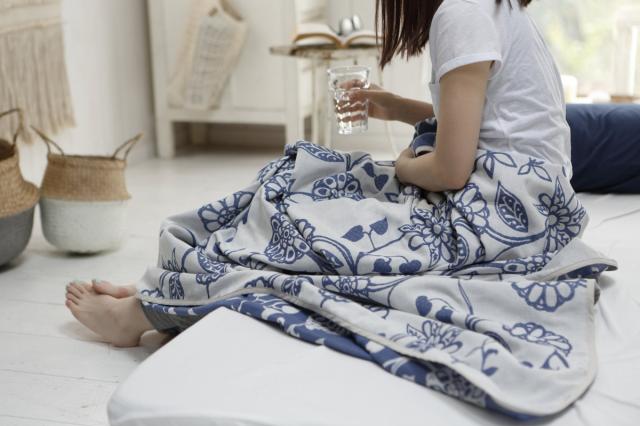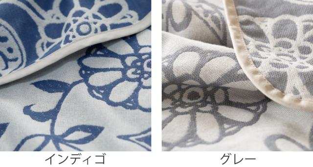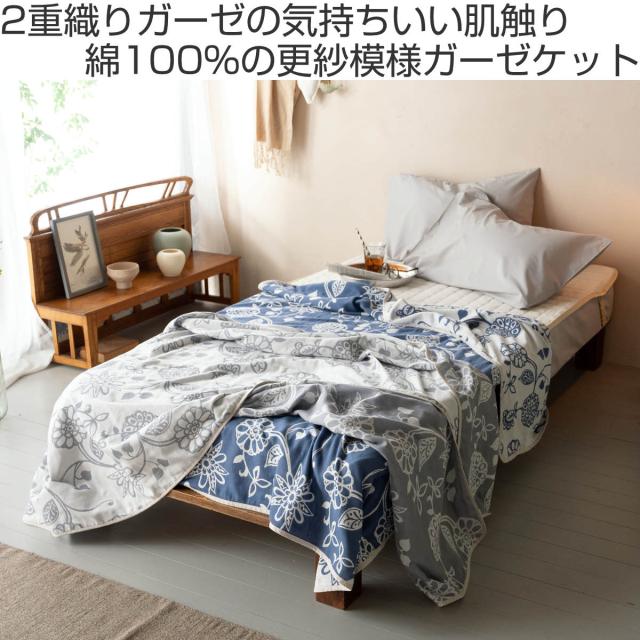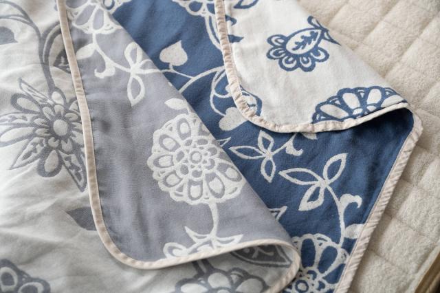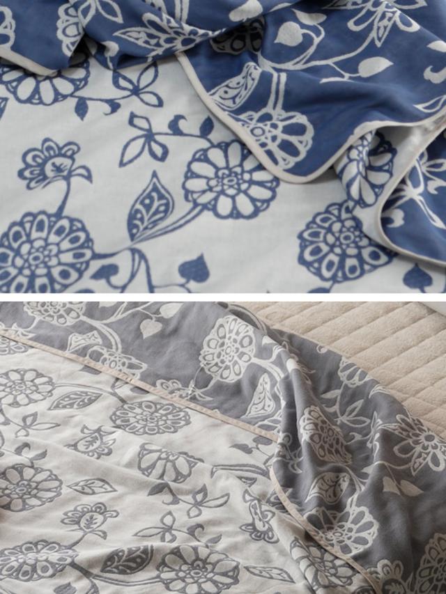 花柄のモノトーン配色が大人可愛いガーゼケットです。綿100%なので肌触りがよく、春夏の掛け布団として最適です。