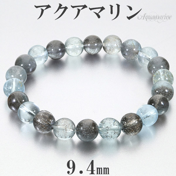 アクアマリン ブラックベリル シーン 入り 高品質 ブレスレット 9.4mm 19cm メンズL レディースLL サイズ 3月 誕生石 天然石