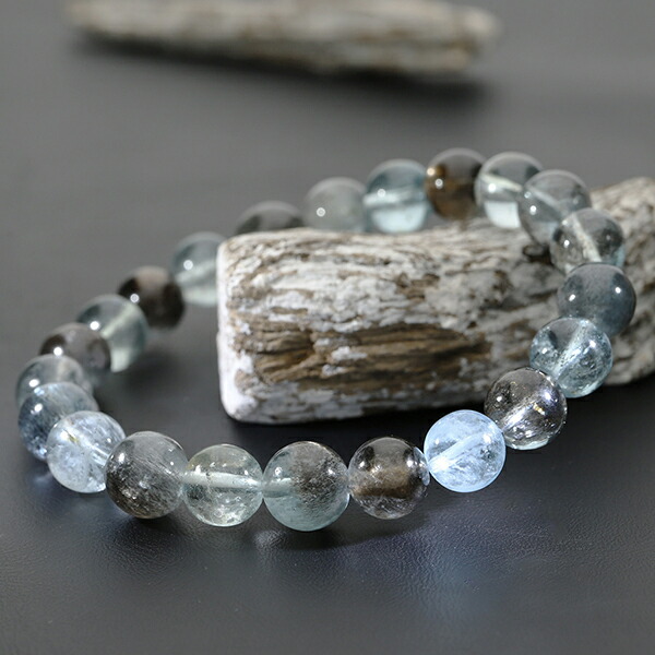 アクアマリン ブラックベリル シーン 入り 高品質 ブレスレット 9.4mm 19cm メンズL レディースLL サイズ