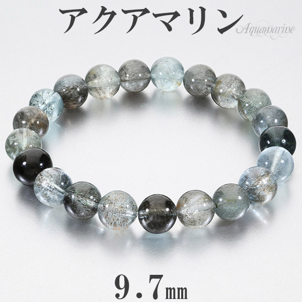 アクアマリン ブラックベリル シーン 入り 高品質 ブレスレット 9.7mm 19cm メンズL レディースLL サイズ 3月 誕生石 天然石