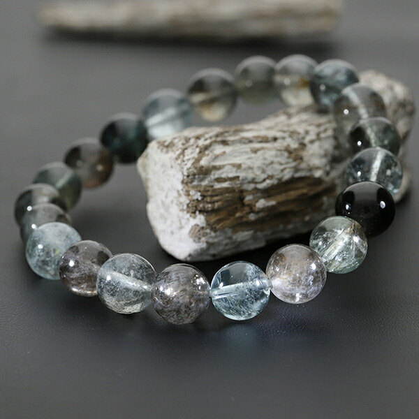 アクアマリン ブラックベリル シーン 入り 高品質 ブレスレット 9.7mm 19cm メンズL レディースLL サイズ