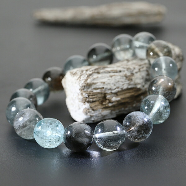 アクアマリン ブラックベリル シーン 入り 高品質 ブレスレット 11.8mm 18cm メンズM レディースL サイズ 3月 誕生石 天然石
