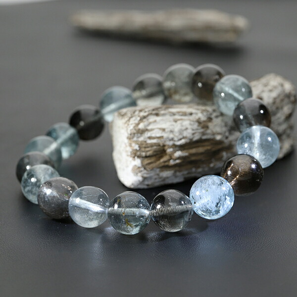 アクアマリン&ブラックベリル ミックス シラー 入り 高品質 ブレスレット 宝石鑑別書付き