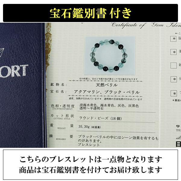 アクアマリン ブラックベリル シーン 入り 高品質 ブレスレット 宝石鑑別書 付き 11mm 18cm メンズM レディースL サイズ 天然石