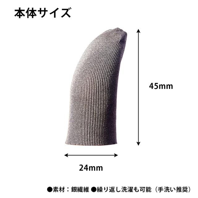 ●指サック 4個入り ●サイズ:H45mm×W24mm ●素材:銀繊維 ●繰り返し洗濯も可能です。(手洗い推奨)