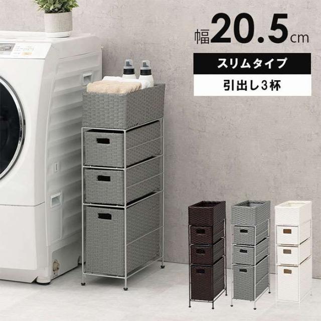 ■商品名:チェスト 引き出しラック 引き出し3杯 幅20.5cm 高さ80cm スリムタイプ すきま収納 洗面所 ランドリースペース 脱衣所 水回り 収納 引きだし