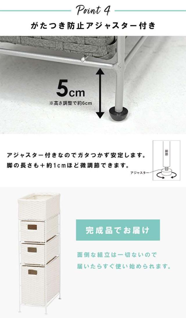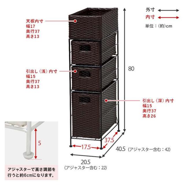 ■内寸及び補足説明:・アジャスター付・カゴ部内寸:約幅17×奥行37×高さ13cm・引出し内寸(浅):約幅15×奥行37×高さ13cm・引出し内寸(深):約幅15×奥行37×高さ26cm