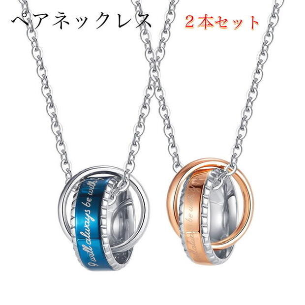 新作 ペアネックレス2本セット 2連リングネックレス サージカルステンレス ペアネックレス 金属アレルギー お揃いカップル ステンレスネックレスチェーン ピンクゴールド シルバー ブルー おそろい メンズ レディース カジュアル プレゼント