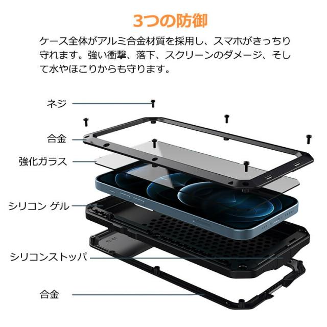 ●ケース全体がアルミ合金材質を採用し、スマホがきっちり守れます。強い衝撃、落下、スクリーンのダメージ、そして水やほこりからも守ります。