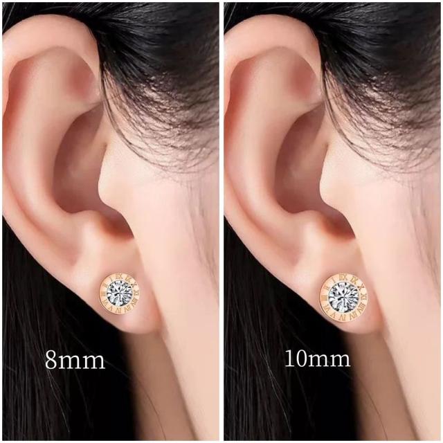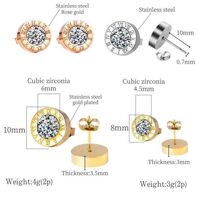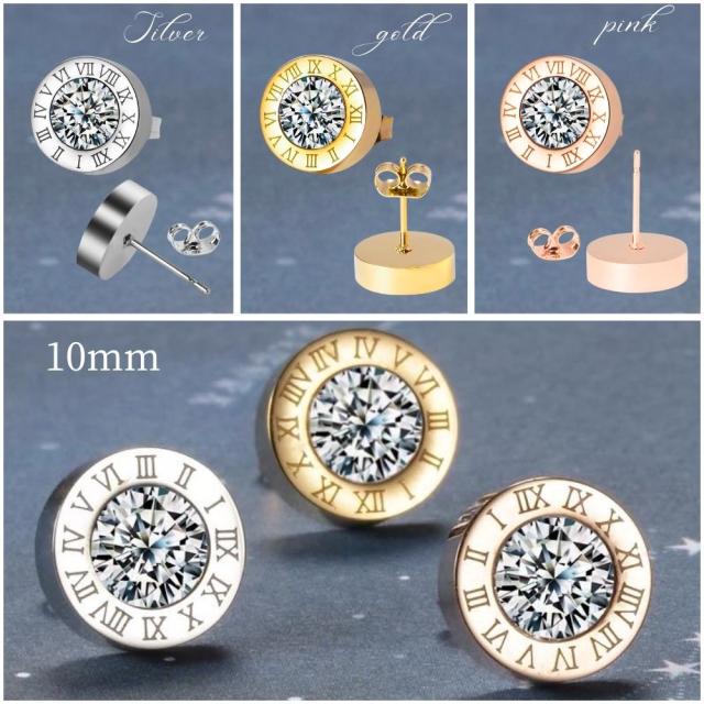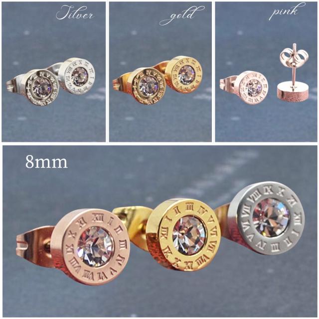サージカルステンレスピアス アレルギー対応 CZダイヤ(キュービック・ジルコニア) ローマ数字ピアス レディース メンズ 18K ピンクゴールド ゴールド シルバー ステンレスピアス 高級感 華奢 上品 存在感 カジュアル かわいい おしゃれ プレゼント
