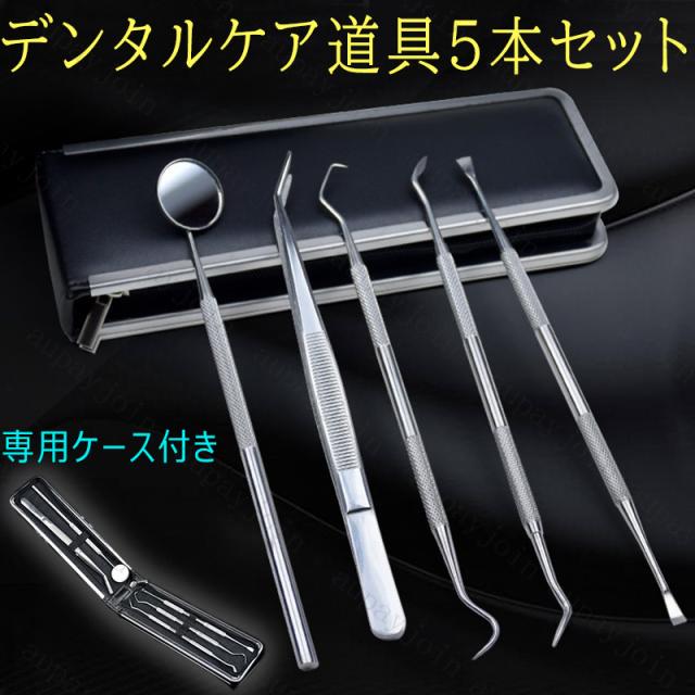 br60#デンタルケア 5本セット 歯科口腔清掃キット ヤニ 口臭予防 専用ケース付き 歯石 歯の清掃ツール プラーク 茶汚れ 送料無料 男女兼用 プレゼント 歯石取り 器具
