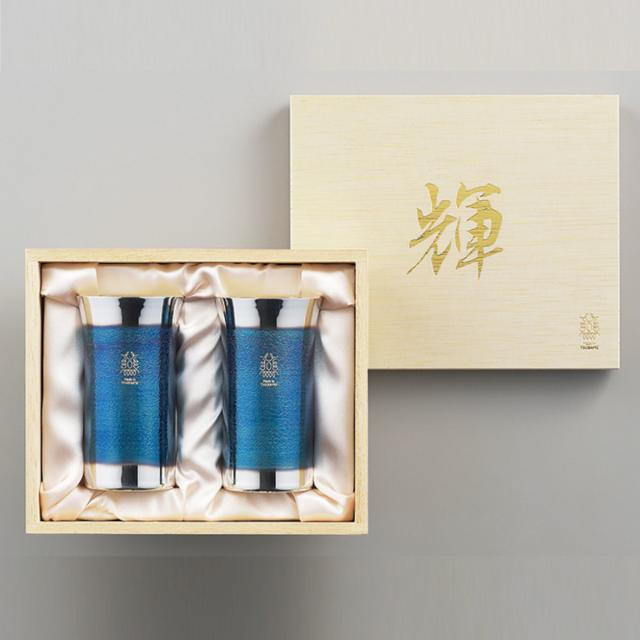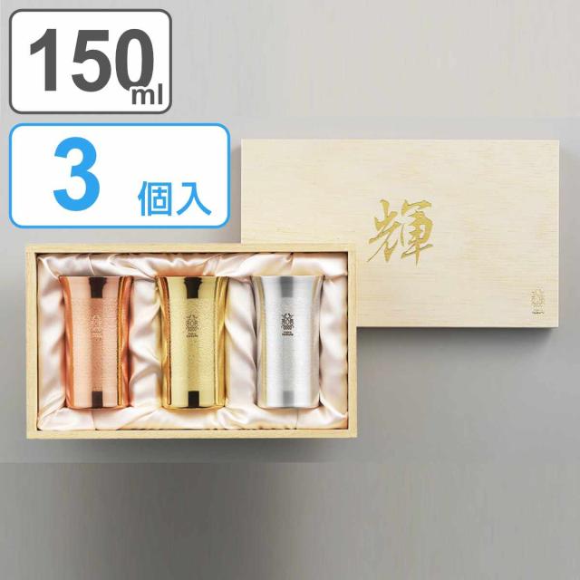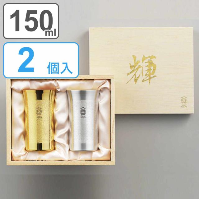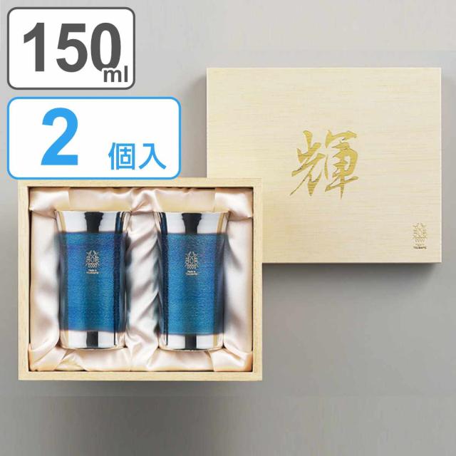 ビアタンブラー 150ml 2個入り 輝 純銅 銀めっき古美仕上げ ( タンブラー 純銅ビアカップ ビアグラス 一口タンブラー 銅製 銅 メッキ 日本製 ペア ビール ビールグラス ビールタンブラー 桐箱 木箱入り おしゃれ ギフト )