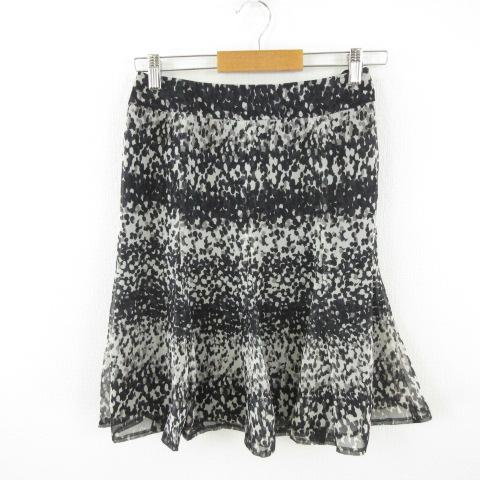 【中古】22オクトーブル 22 OCTOBRE ミニスカート フレア 総柄 黒 グレー 36 *E329 レディース