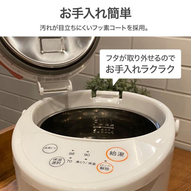 断熱性の高い素材と構造で電気ポット自体の保温性も大幅アップします。