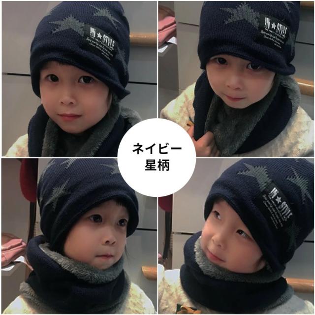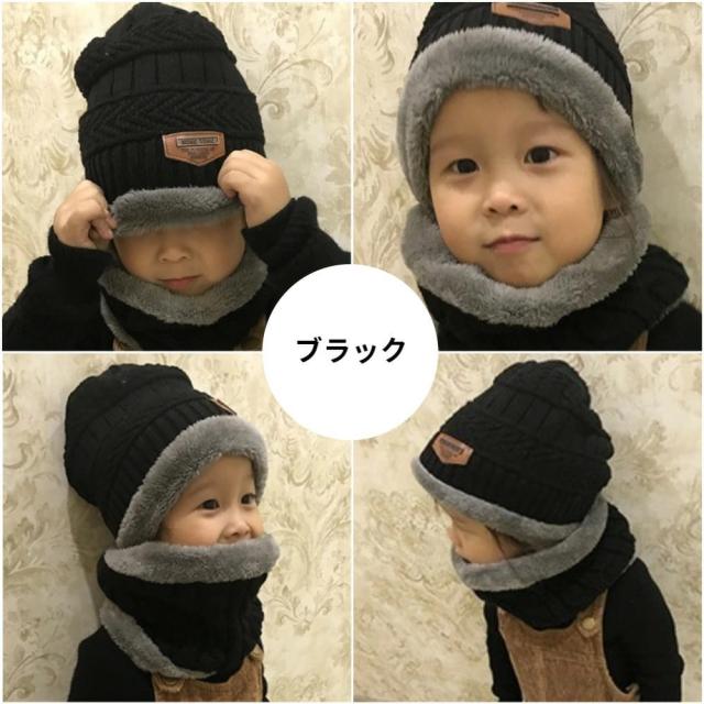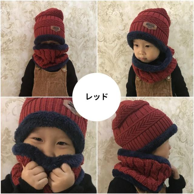 ニット帽 ネックウォーマー キッズ 2点セット 帽子 ニット マフラー スヌード 子供 裏ボア 裏起毛 厚手 男の子 女の子 子ども ベビー 幼児 ジュニア 小学生 冬 あったか 暖かい 防寒 防風 もこもこ ゆったり おしゃれ 無地 黒 赤 カーキ ネイビー