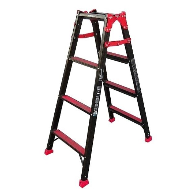 ブラック(幅広踏ざん両面55mはしご兼用脚立)+レッド(滑り止めテープ)