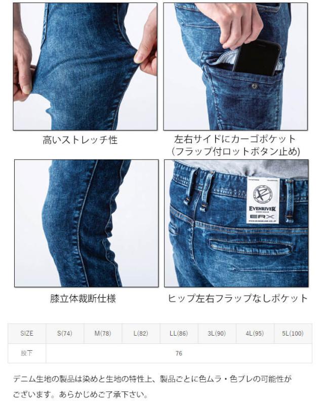 作業服 イーブンリバー EVENRIVER ストレッチデニムカーゴX9 USD902 サイズS〜4L パウダーブルー
