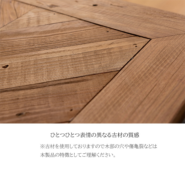 古材の温もりと重厚感 リビングテーブル 130×70 送料無料 ヘリンボーン センターテーブル 木製 ローテーブル おしゃれ ヴィンテージ 天然木 ナチュラル ソファー用テーブル 長方形 高さ40 パイン材