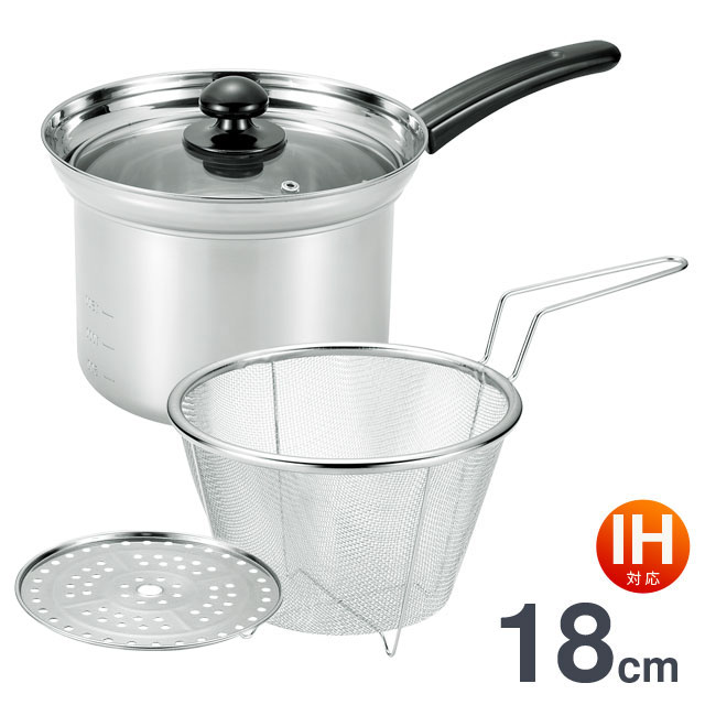 | パスタ 麺類 そうめん 多用途鍋 蒸し器 深型片手鍋 18cm ザル付き 蒸し目皿付 IH ステンレス FPZ-18MS |