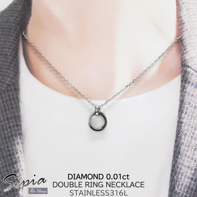 ネックレス ペンダント レディース メンズ ペア 20代 30代 40代 50代 ステンレス ダイヤモンド ダブル リング シルバー ゴールド ラインストーン 金属アレルギー 対応