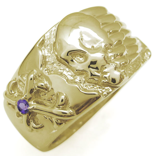 ドクロ リング 骸骨 指輪 K10 アメジスト メンズリング