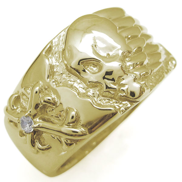 ドクロ リング 骸骨 指輪 K10 ダイヤモンド メンズリング