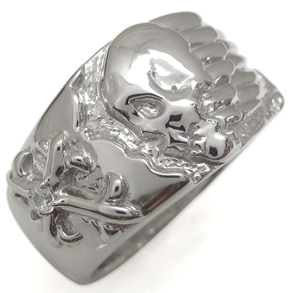 プラチナ 十字架 指輪 ダイヤモンド クロスリング 髑髏リング