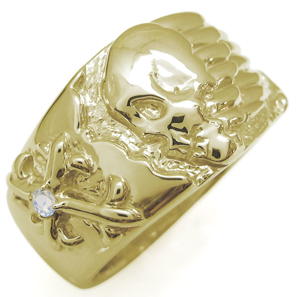 ドクロ リング 骸骨 指輪 K10 ロイヤルブルームーンストーン メンズリング
