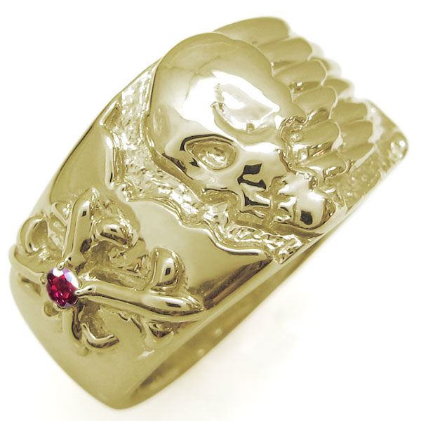 ドクロ リング 骸骨 指輪 K10 ルビー メンズリング