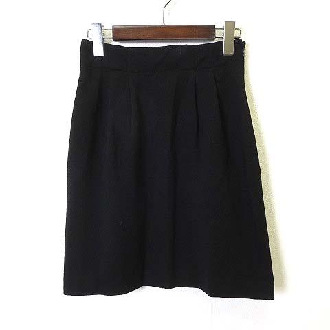 【中古】ユリエニタニ YURIE NITANI スカート 台形スカート タック ウール ストレッチ 膝丈 L 42 黒 ブラック 美品