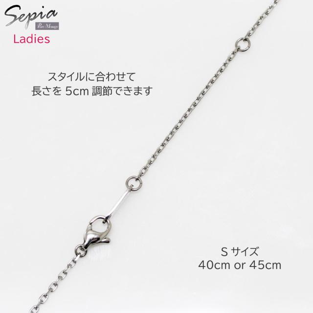 ・チェーンの長さ:Sサイズ:約40cm、アジャスター+約5cm、最長約45cm。Mサイズ:約45cm、アジャスター+約5cm、最長約50cm