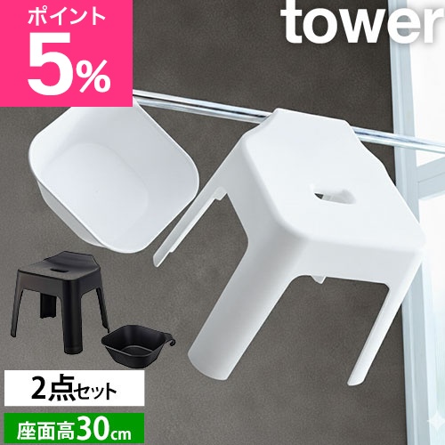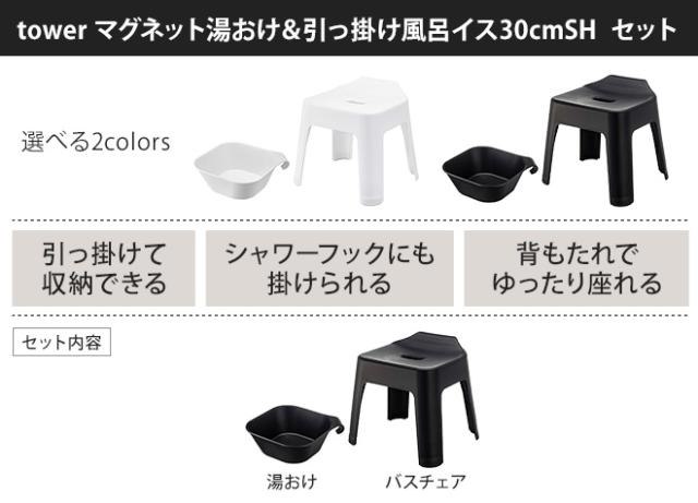 山崎実業 風呂椅子 引っ掛け風呂イス 風呂いす バスチェア 風呂桶 桶 シャワーチェア お風呂イス 引っ掛け マグネット 30cm 浮かせる収納 収納 yamazaki タワーシリーズ 黒 白 tower タワー マグネット&引っ掛け湯おけ+引っ掛け風呂イス SH30 セット 5526 5527 5378 5379 バスグッズ 風呂 浴室 壁 汚れにくい フック シンプル 清潔 北欧 モノトーン ホワイト ブラック 2点セット 椅子tower SH30タワー 黒 白 新生活 おすすめ 高さ30cm 座面高約30cm 引っ掛け タオルバー 浴室乾燥 引っ掛け風呂イスSH30 SET