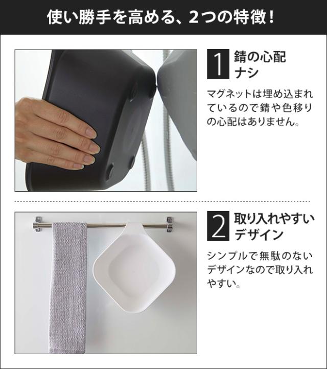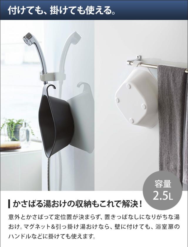 湯おけは、マグネット仕様なので壁にも付けられるタイプ。