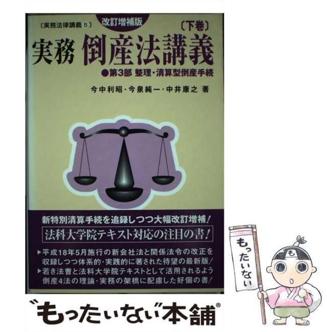 商品名:【中古】 実務倒産法講義 下巻 改訂増補版 (実務法律講義 5) / 今中 利昭、今泉 純一 / 民事法研究会 [単行本]【メール便送料無料】