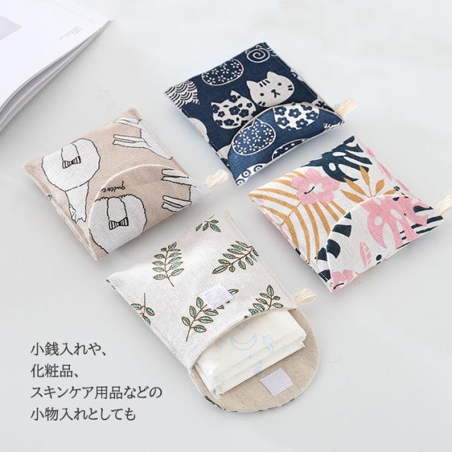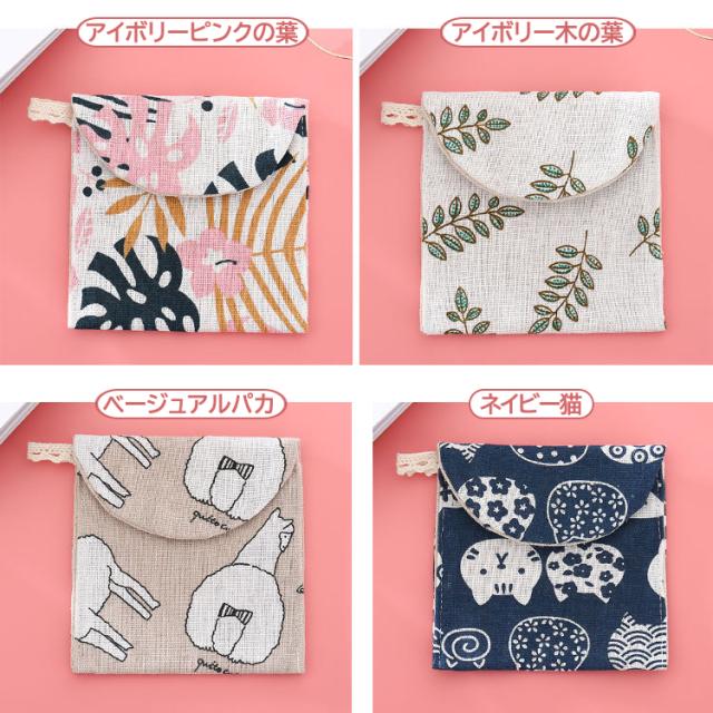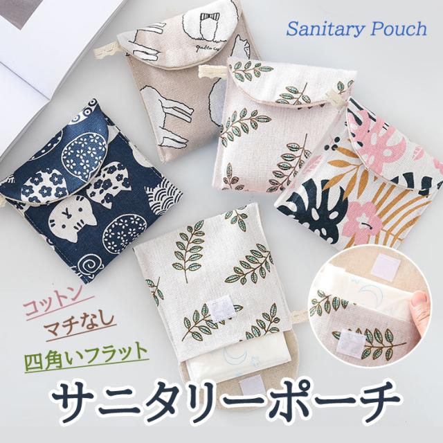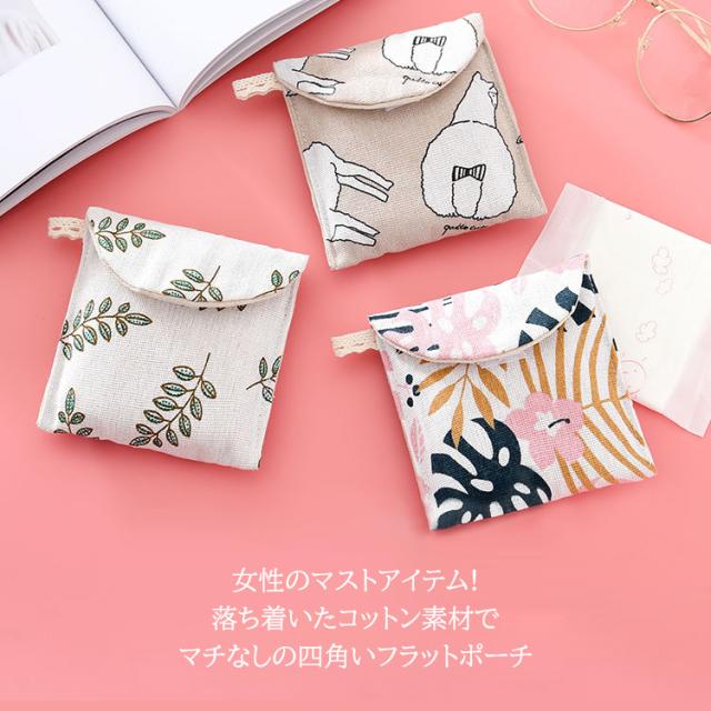 サニタリーポーチ 小物入れ ナプキン エチケット ポーチ 鏡 あぶらとり紙 ミニティッシュ 生理用ナプキン収納 四角いフラットサニタリーポーチ