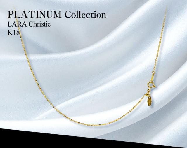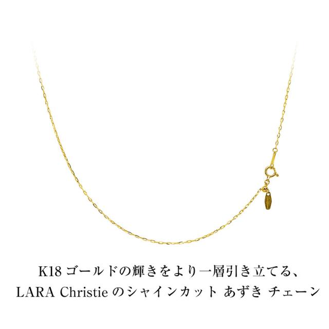 LARA Christie プラチナムコレクションのネックレスチェーン。K18ゴールドシャインカットチェーン。シンプルにそのまま着ければデコルテにアクセントにもなり、お手持ちのネックレスと重ね付けすれば上級オシャレを演出します。同じペンダントトップでも、チェーンを変えるとまた違った雰囲気になるので、お手持ちのペンダントトップの替えチェーンにもお勧めです。プレート部分には、「K18」の刻印が有り、素材と品質の良さも証明。オフィスシーン、フォーマルシーンに合わせやすい、使い勝手のよいチェーンです。