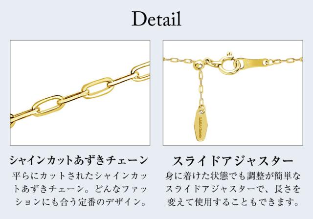 チェーンネックレスはスライドアジャスターになっているので、最大45cmまで自由な長さで調節可能。チョーカーとして、ネックレスとして、お好みの長さに調整してお楽しみください。