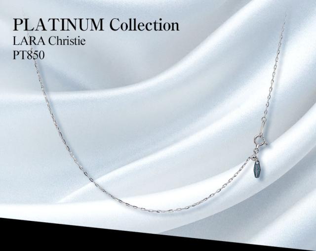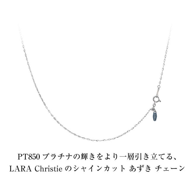 LARA Christie プラチナムコレクションのネックレスチェーン。pt850プラチナシャインカットアズキチェーン。シンプルにそのまま着ければデコルテにアクセントにもなり、お手持ちのネックレスと重ね付けすれば上級オシャレを演出します。同じペンダントトップでも、チェーンを変えるとまた違った雰囲気になるので、お手持ちのペンダントトップの替えチェーンにもお勧めです。プレート部分には、「pt850」の刻印が有り、素材と品質の良さも証明。オフィスシーン、フォーマルシーンに合わせやすい、使い勝手のよいチェーンです。