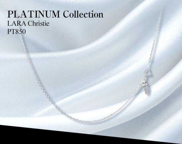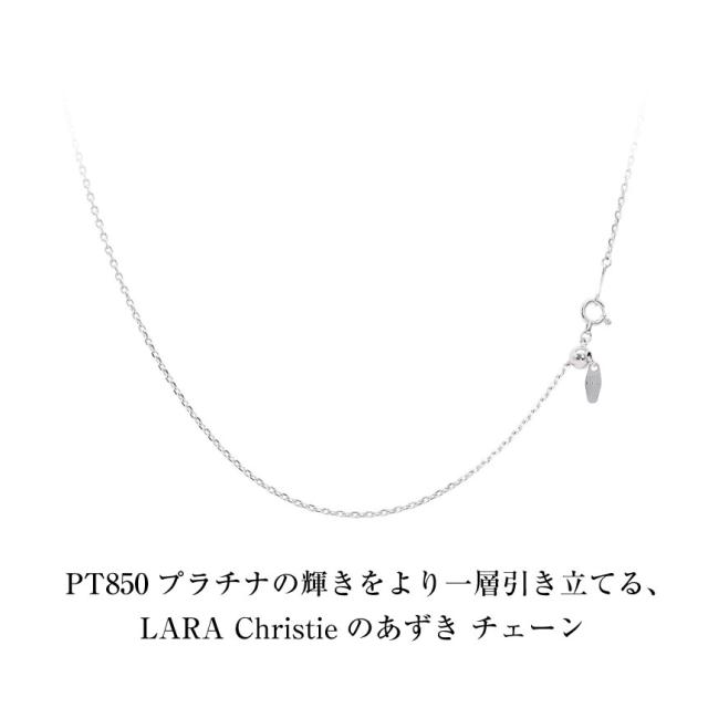 LARA Christie プラチナムコレクションのネックレスチェーン。pt850プラチナアズキチェーン。シンプルにそのまま着ければデコルテにアクセントにもなり、お手持ちのネックレスと重ね付けすれば上級オシャレを演出します。同じペンダントトップでも、チェーンを変えるとまた違った雰囲気になるので、お手持ちのペンダントトップの替えチェーンにもお勧めです。プレート部分には、「pt850」の刻印が有り、素材と品質の良さも証明。オフィスシーン、フォーマルシーンに合わせやすい、使い勝手のよいチェーンです。