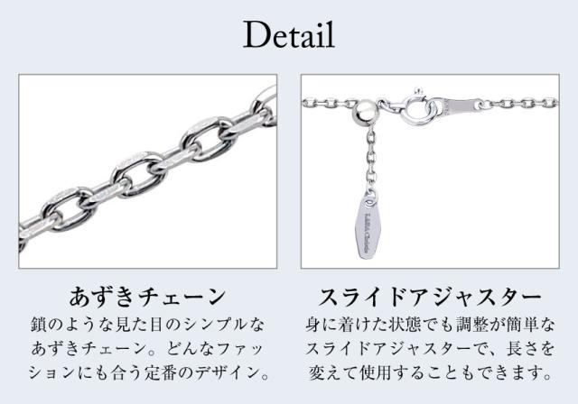 チェーンネックレスはスライドアジャスターになっているので、最大45cmまで自由な長さで調節可能。チョーカーとして、ネックレスとして、お好みの長さに調整してお楽しみください。