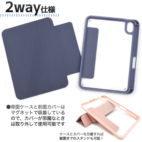 iPad mini 第6世代 分離式 手帳型 カラーケース iPadmini 第六世代 保護カバー 背面ケース 前面ケース 分離して使える 磁気吸着 2WAY仕様 シンプル 保護ケース かわいい 無地 アイパッドミニケース スタンダード スタイリッシュ オーソドックス ベーシック アイパッドミニ