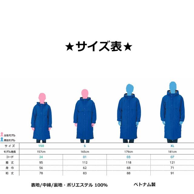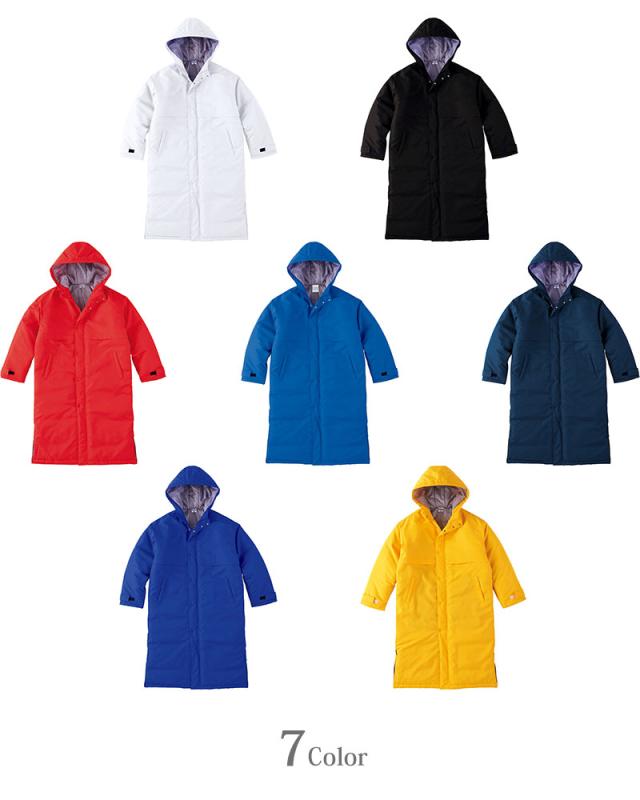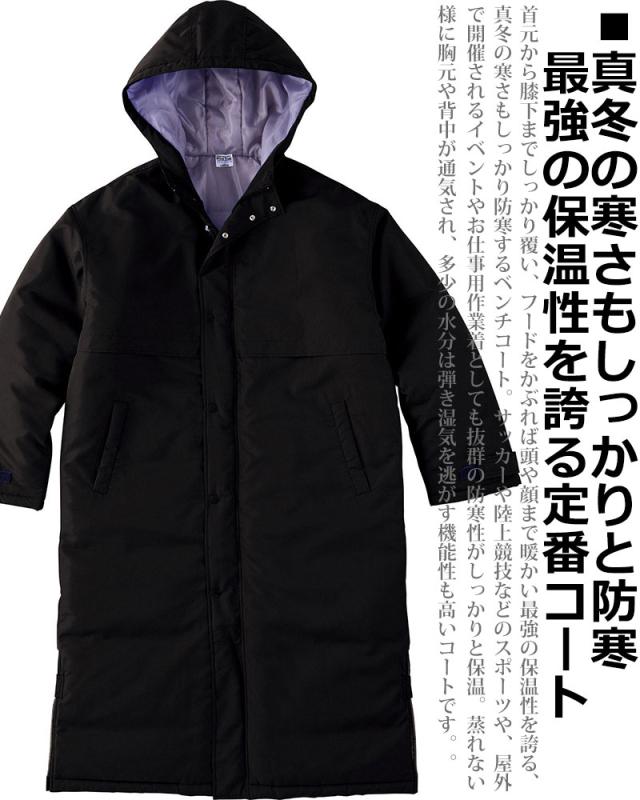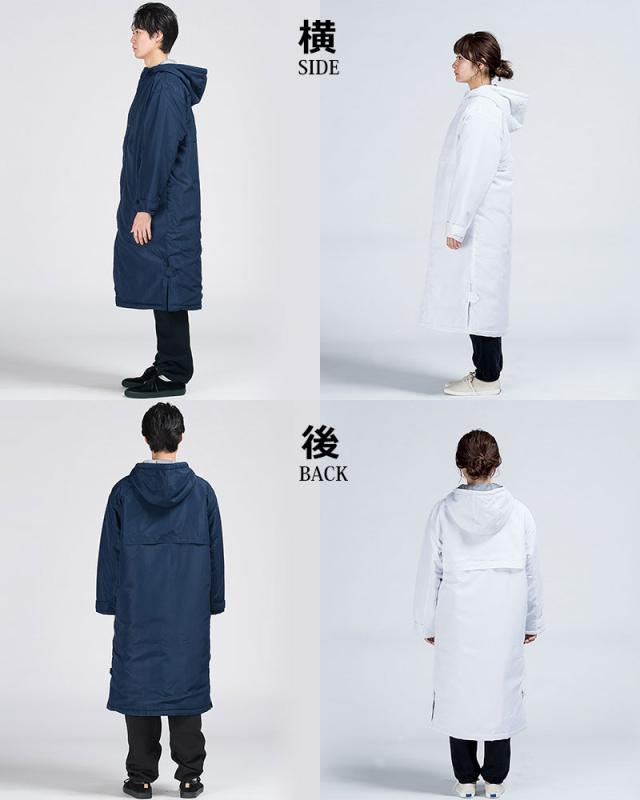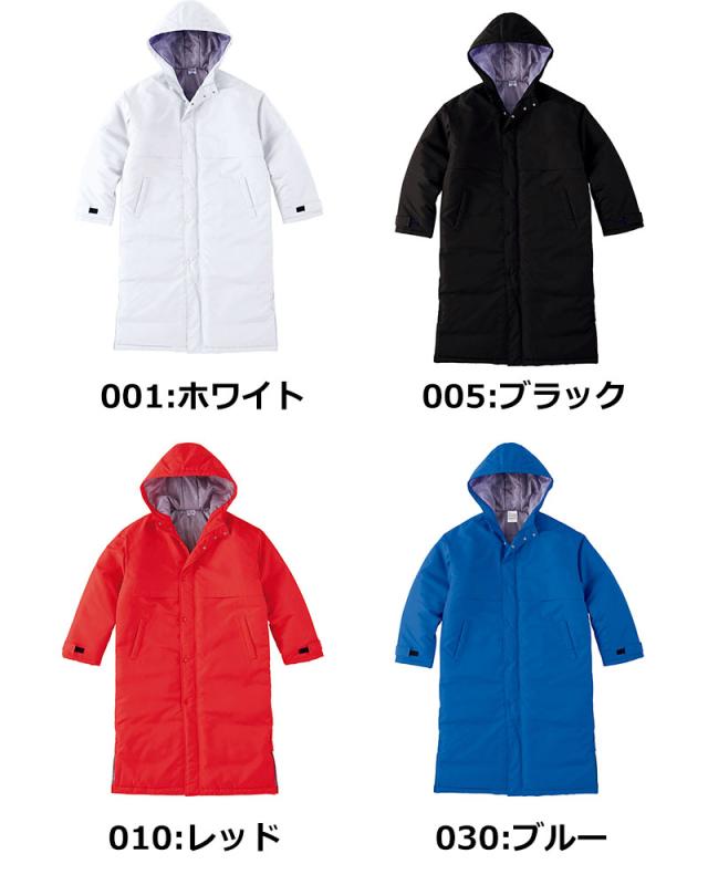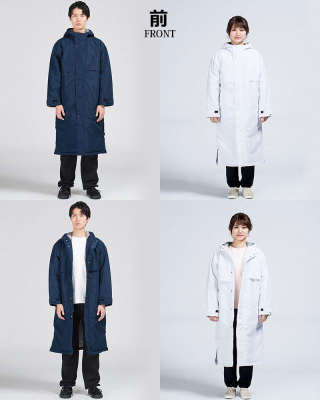 『ベンチコート』『ベンチウォーマー』『スポーツコート』『中綿コート』『運動着』『作業着』『防寒着』『無地』『男女兼用』『メンズ』『レディース』『白』『黒』『青』