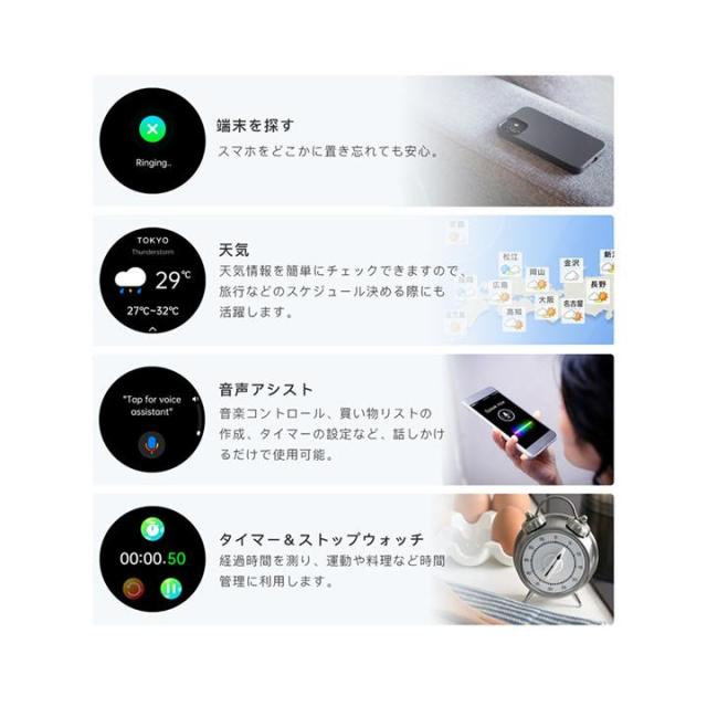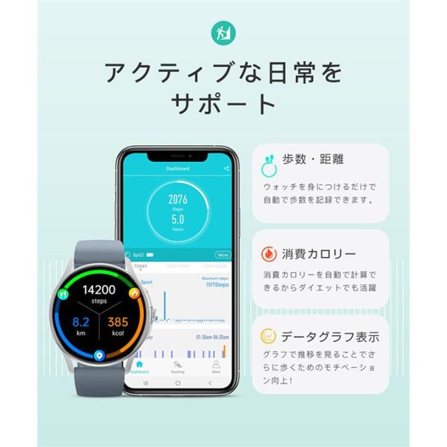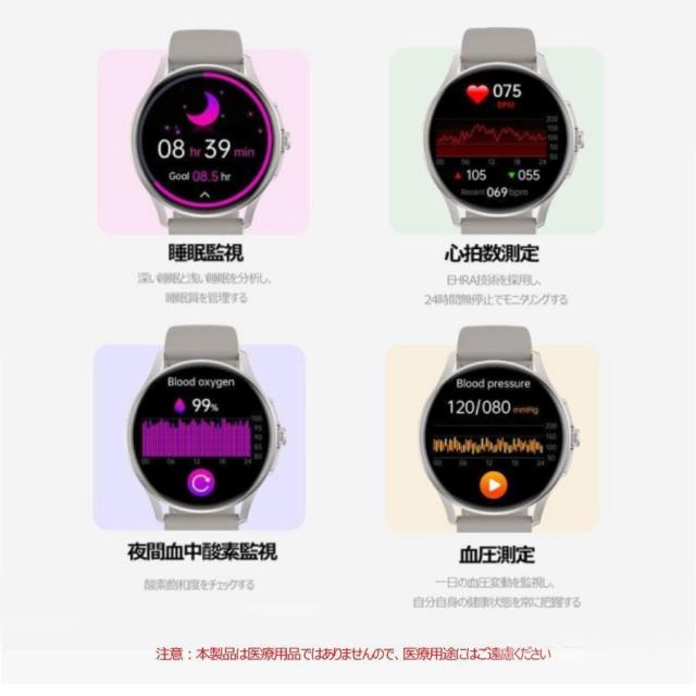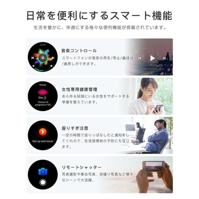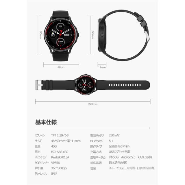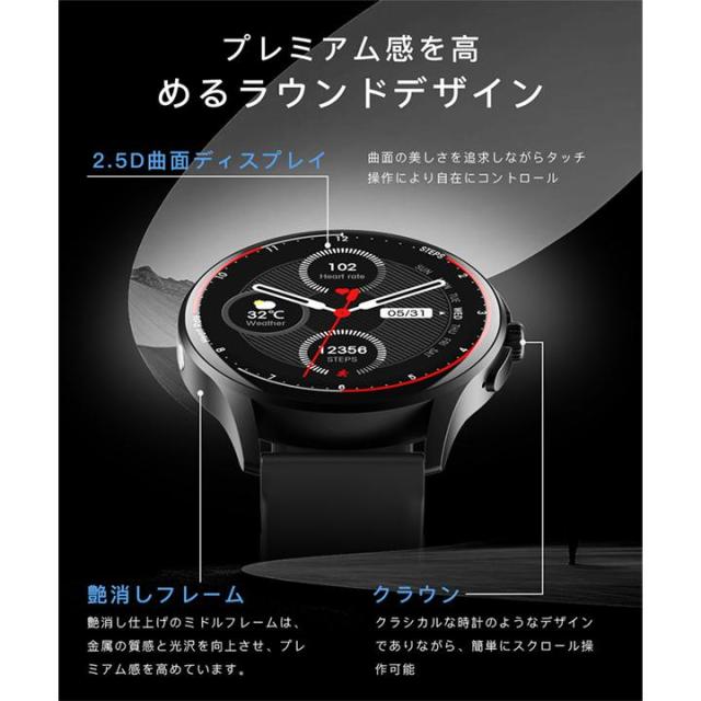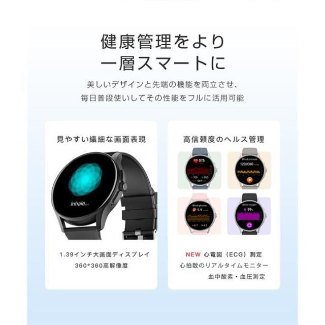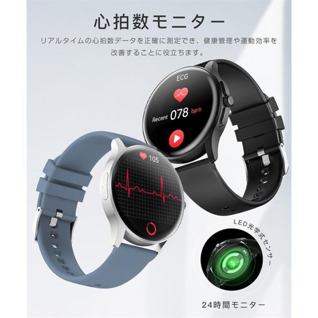 スマートウォッチ ECG PPG 心電図 音声通話 1.39インチ 丸型 日本製センサー 血圧測定 SOS機能 高精度心拍数 血中酸素 睡眠監視 着信通知 初心者高齢者 日本語 正規品 Apple android