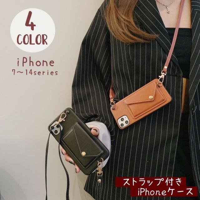 iPhoneケース スマホケース スマホカバー ストラップ付き ショルダー型 バッグ型 ななめ掛け レザー調 フェイクレザー 無