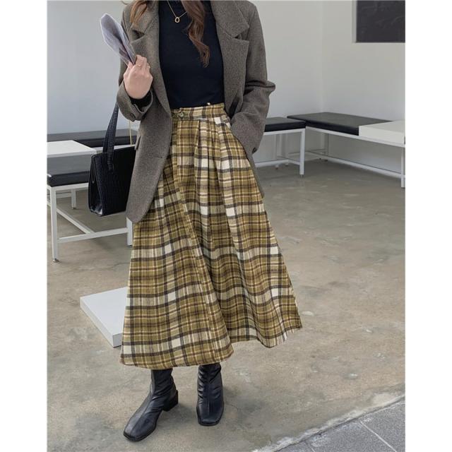 古着のような渋めのカラーリングが可愛いチェックスカート♪