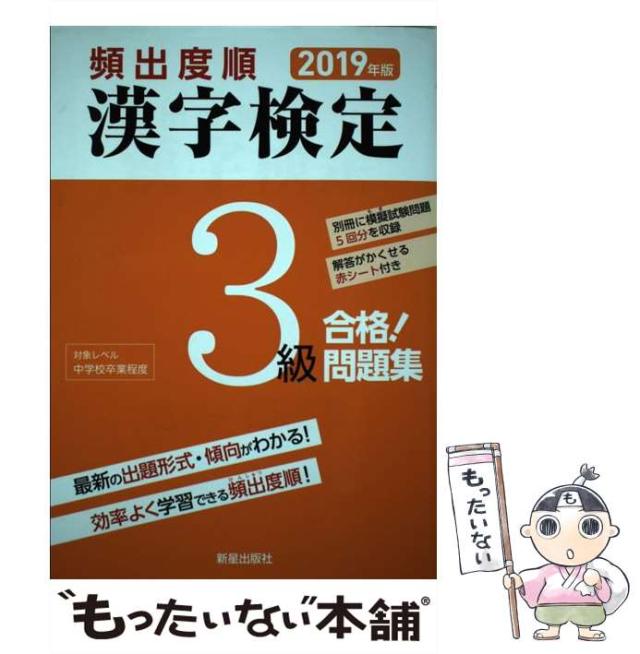 商品名:【中古】 頻出度順漢字検定3級合格!問題集 [2019年版] / 漢字学習教育推進研究会 / 新星出版社 [単行本]【メール便送料無料】