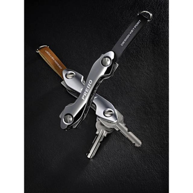 SIDE SIDE デザインキーホルダー Design Key Port カギ3枚収納 クローム 革ストラップ ブラック S001