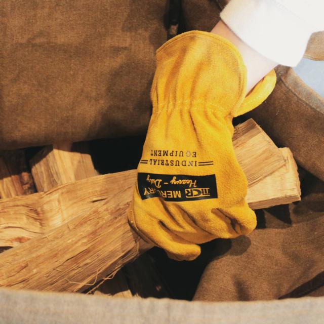 牛革バックスキンのワーキンググローブです。キャンプでの焚き火や、ダッチオーブンを使用しての調理など、火や熱さを気にすることなく作業ができます。