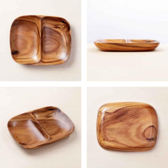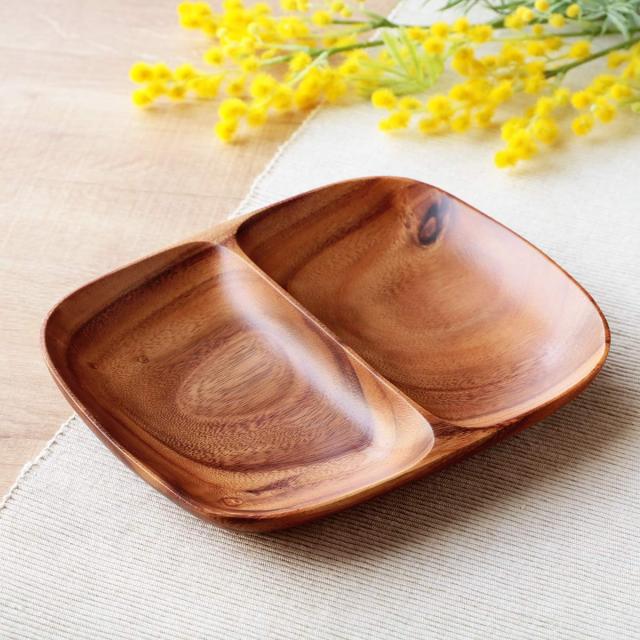 ランチプレート 21cm アカシア製 食洗機対応 ( 食器 木製食器 アカシア 皿 お皿 仕切り皿 ランチ皿 木製 ウッドプレート 北欧風 カフェ風 トレイ アカシア食器 木目 取り皿 パン皿 仕切り 分割 木 おしゃれ )