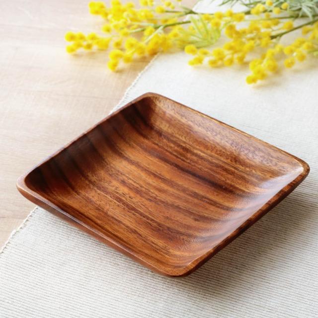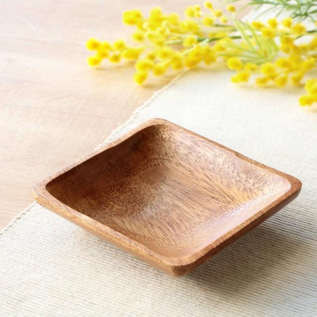 ボウル 13.5cm スクエア アカシア製 食洗機対応 ( 食器 木製食器 アカシア 皿 お皿 小皿 木製 取り皿 ウッドプレート 北欧風 カフェ風 トレイ アカシア食器 木目 パン皿 木 銘々皿 深め おしゃれ )